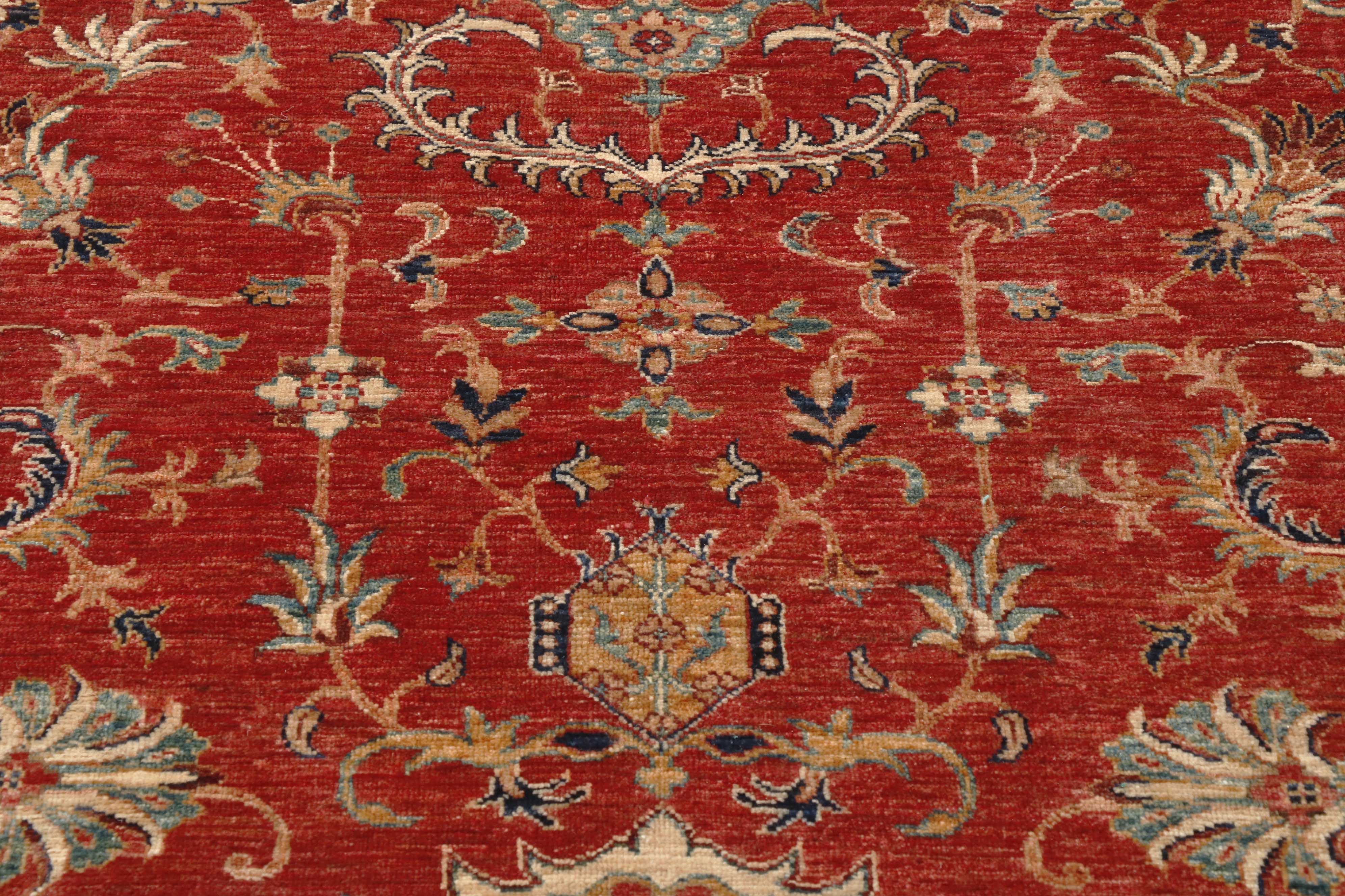 Afghan Aryana rugs are hand-knotted in Mazar-e-Sharif and Kabul, Afghanistan, often featuring designs inspired by museum pieces. Woven from long wool sheared from Karakul sheep, the wool is washed with a gentle soap and water, then hand-combed and hand-spun on a spindle. Next, the wool is vegetable-dyed operating plants, flowers and berries, walnut husks, pomegranate rind, madder root, and indigo. Not surprisingly, wools vary in colour due to differences in the dyes' absorption, resulting in a feature called 'Abrash' that gives Aryana rugs their unique colour and distinct appearance.