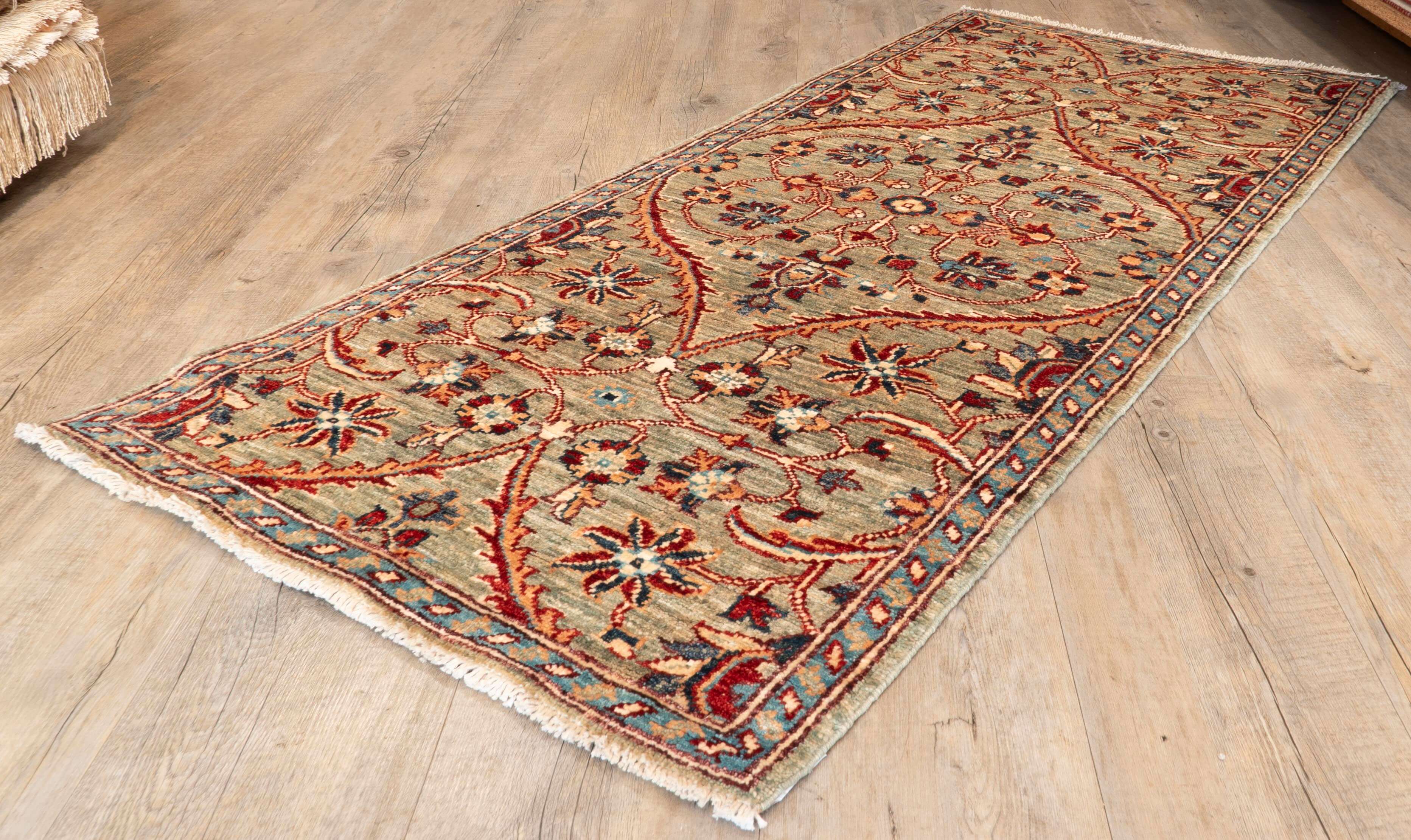 This unique and varied collection is produced in northwest Afghanistan and has a construction similar to that of the Ziegler rugs. The wool is hand-sheared from the indigenous Karukal sheep. It is then hand-spun and coloured using natural vegetable and mineral dyes. These pieces have utilised attractive old Persian designs and patterns from unusual museum pieces. They are generally more vibrant colours and less muted shades. However, the exciting and uplifting colours remain almost Jewel-like. The final finishing processes are carried out in Pakistan, where some post-production occurs, including alignment corrections, surface clipping and tumbling, and the washing mentioned earlier.