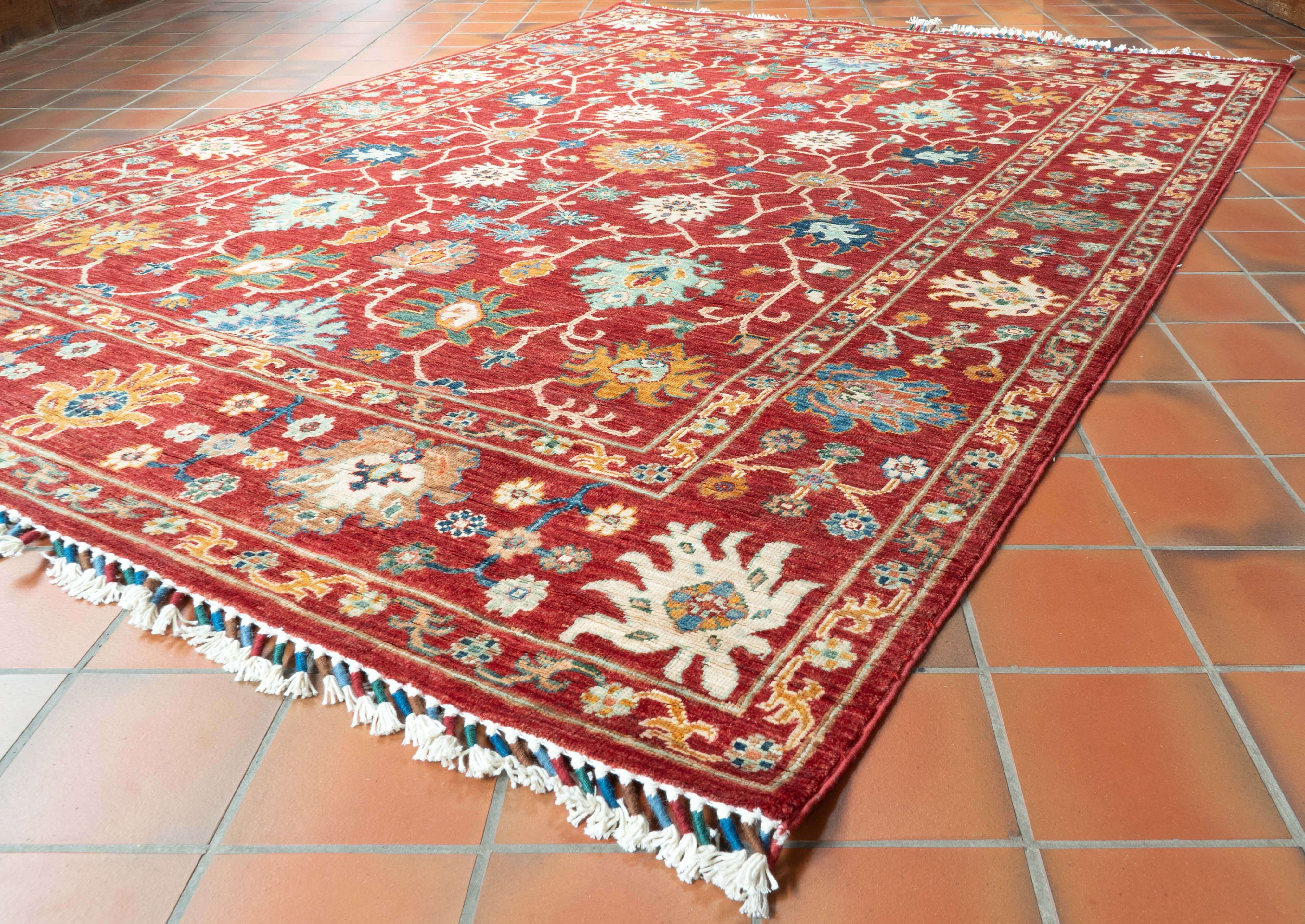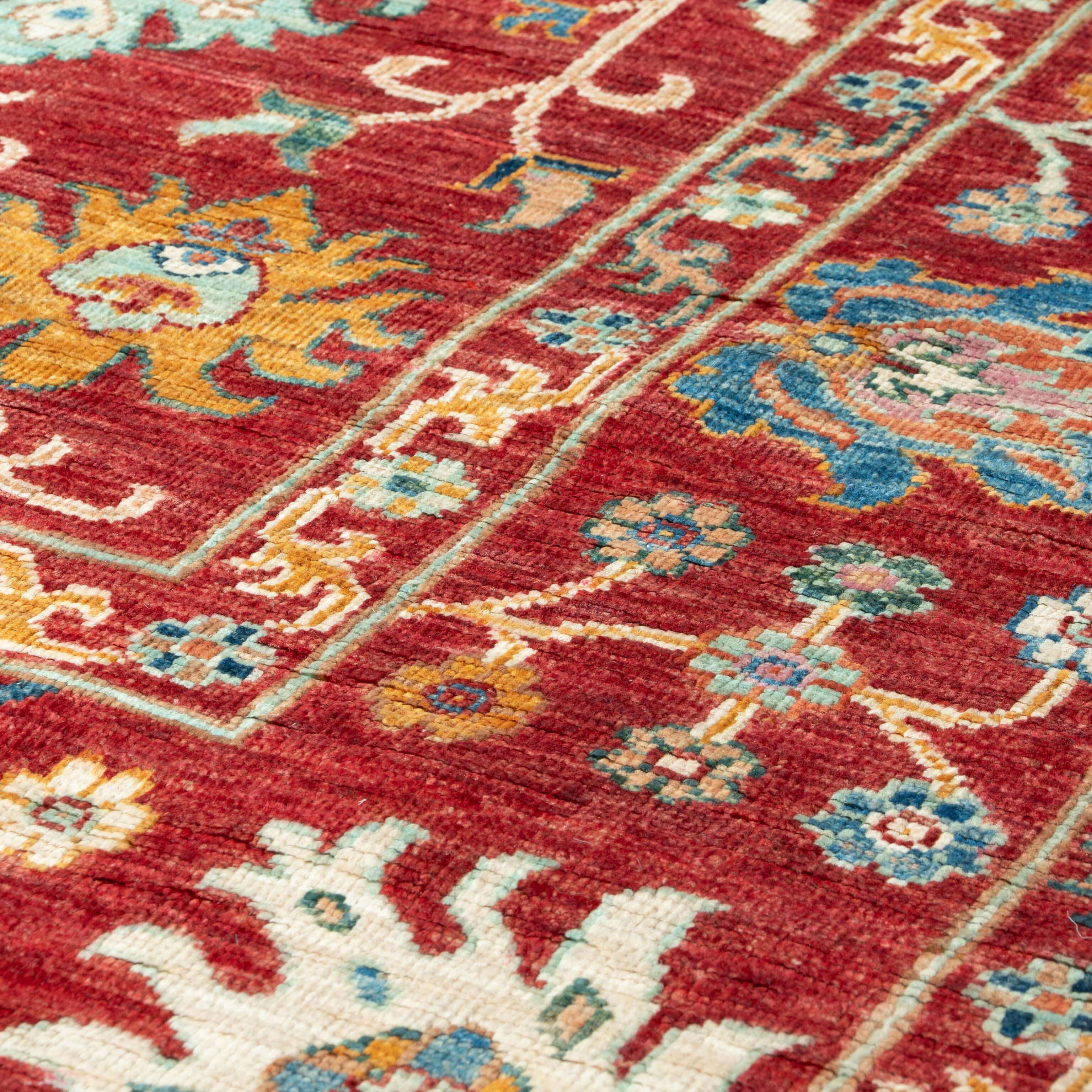 Originating from northwest Afghanistan, this stunning, rich red Sultani rug presents a classic all-over floral motif in vibrant shades that embody timeless sophistication. Meticulously crafted from vegetable-dyed, handspun wool, balances robust durability with a soft, lustrous texture that elevates any interior setting. Each rug is a testament to the expert craftsmanship and artistic heritage passed through generations of skilled weavers, making it both a functional home accessory and a valuable cultural artefact. This premium-quality piece delivers lasting elegance and resilience, ideal for connoisseurs of genuine, handcrafted luxury.