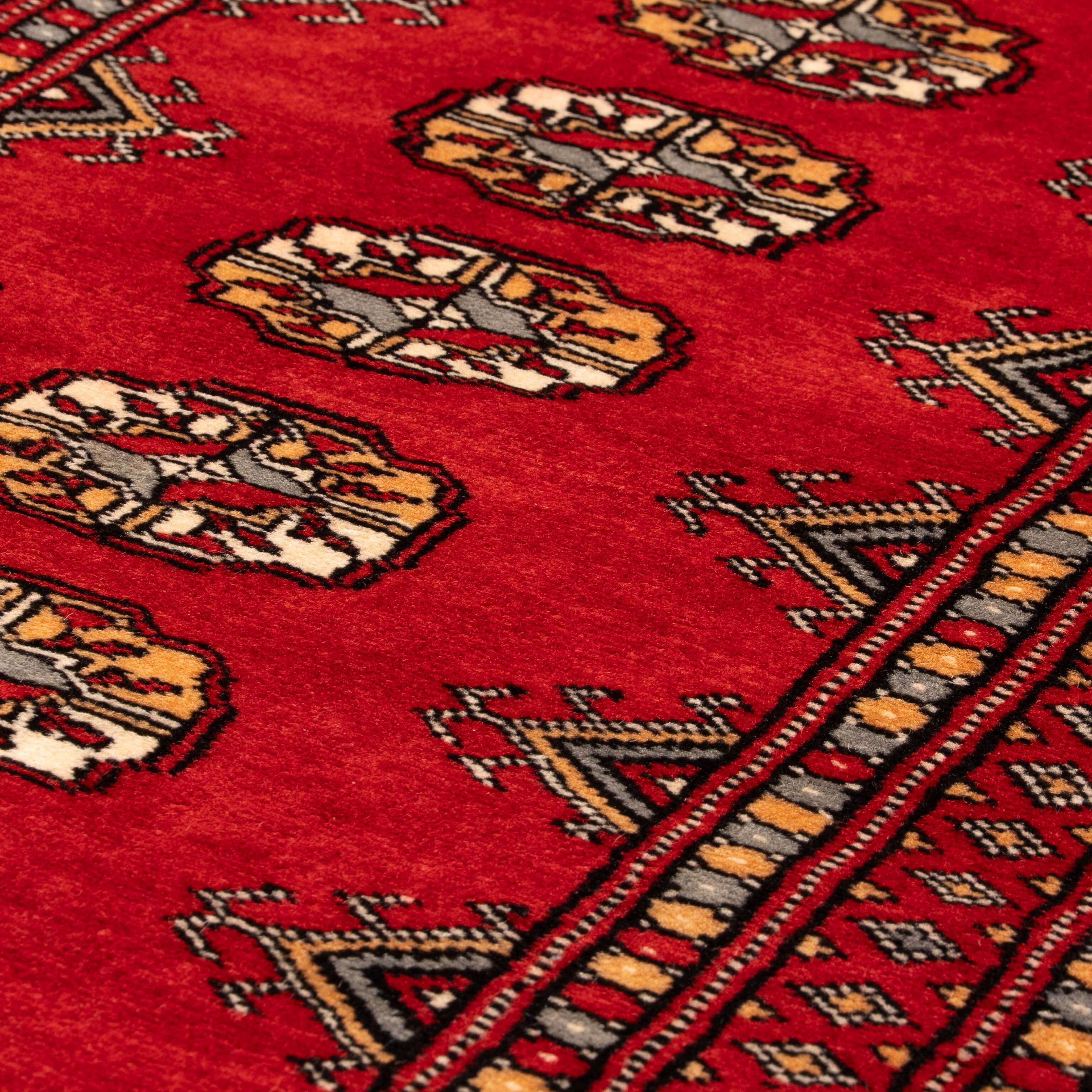 Crafted by skilled artisans in Lahore, Pakistan, this authentic Bokhara short runner reflects generations of traditional weaving expertise. Handmade from soft wool, it features the classic geometric patterns characteristic of oriental design. Each piece supports a thriving cottage industry, ensuring traditional techniques remain alive. Available in multiple sizes and colour options to suit your space, this rug delivers exceptional quality at outstanding value. A timeless investment that brings warmth, character and cultural heritage into your home.