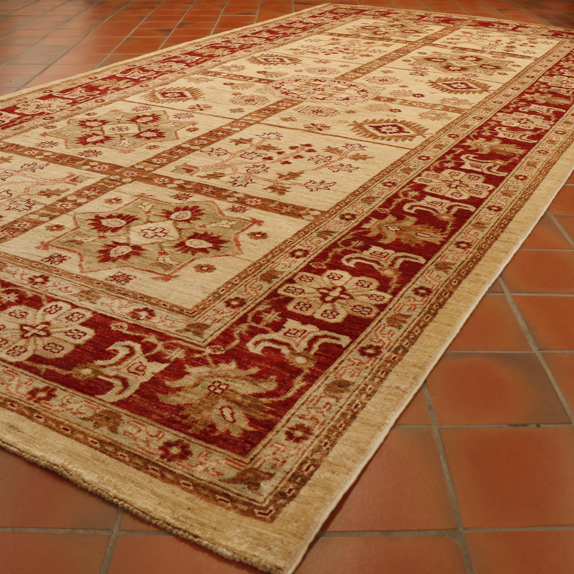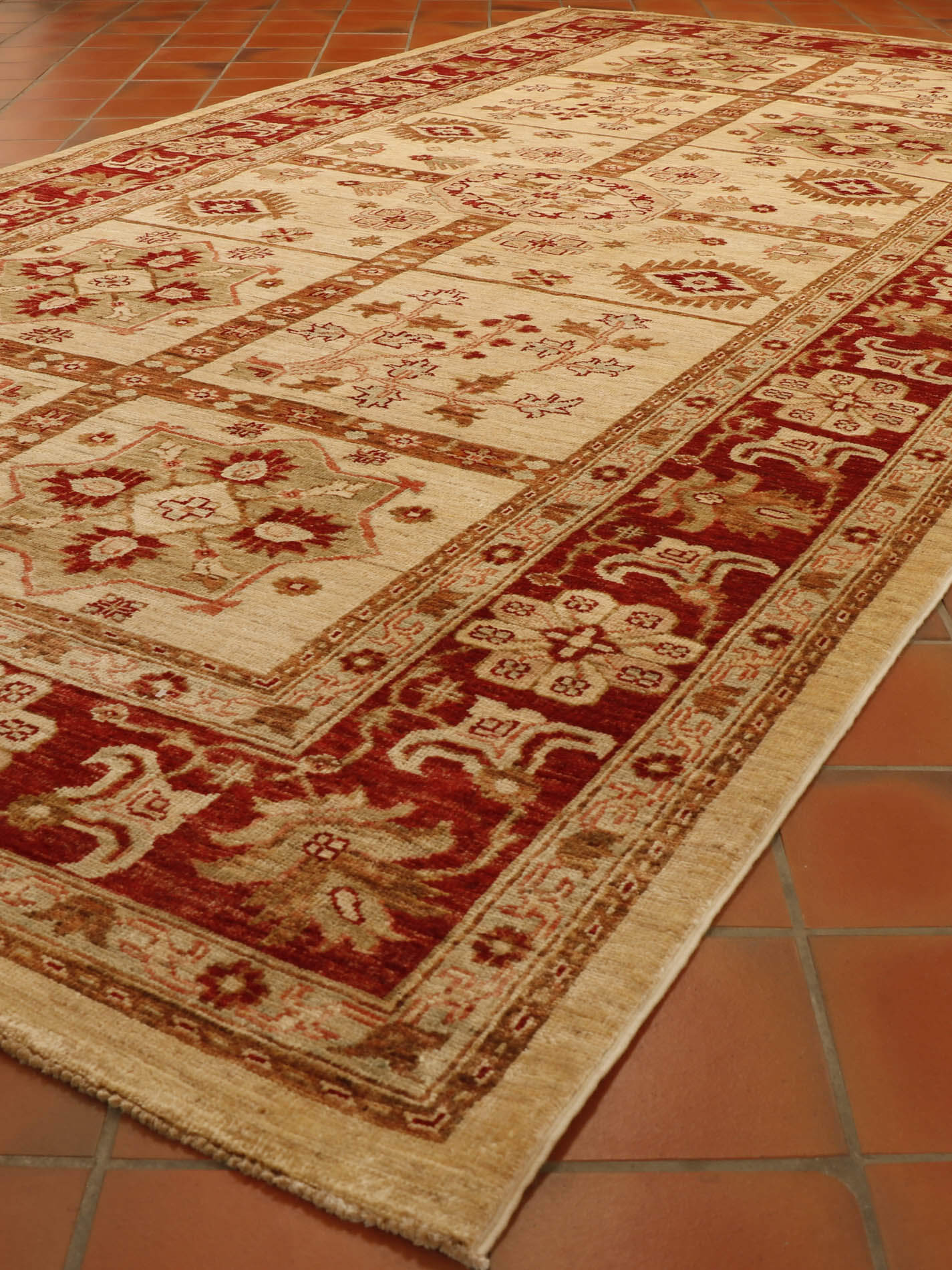 Often, people are curious about the William Morris connection. Ziegler worked collaboratively with William Morris, taking his designs and securing weavers in Tabriz and Sultanabad to produce fine examples of traditionally made carpets explicitly for the booming Victorian export market. The processes were developed at the weaving stage and, more crucially, extended into the finishing process, particularly the herbal washes used. The fashion was to experiment, and the early Ziegler designs were quite different from the traditional rugs and carpets of the period. The Oriental rug trade had not been used in this way before. In many ways, the pioneering techniques used by Ziegler & Co. have been an inspiration for some of the newly designed pieces by Afghan weavers, such as the Samarkand and Mamluks.