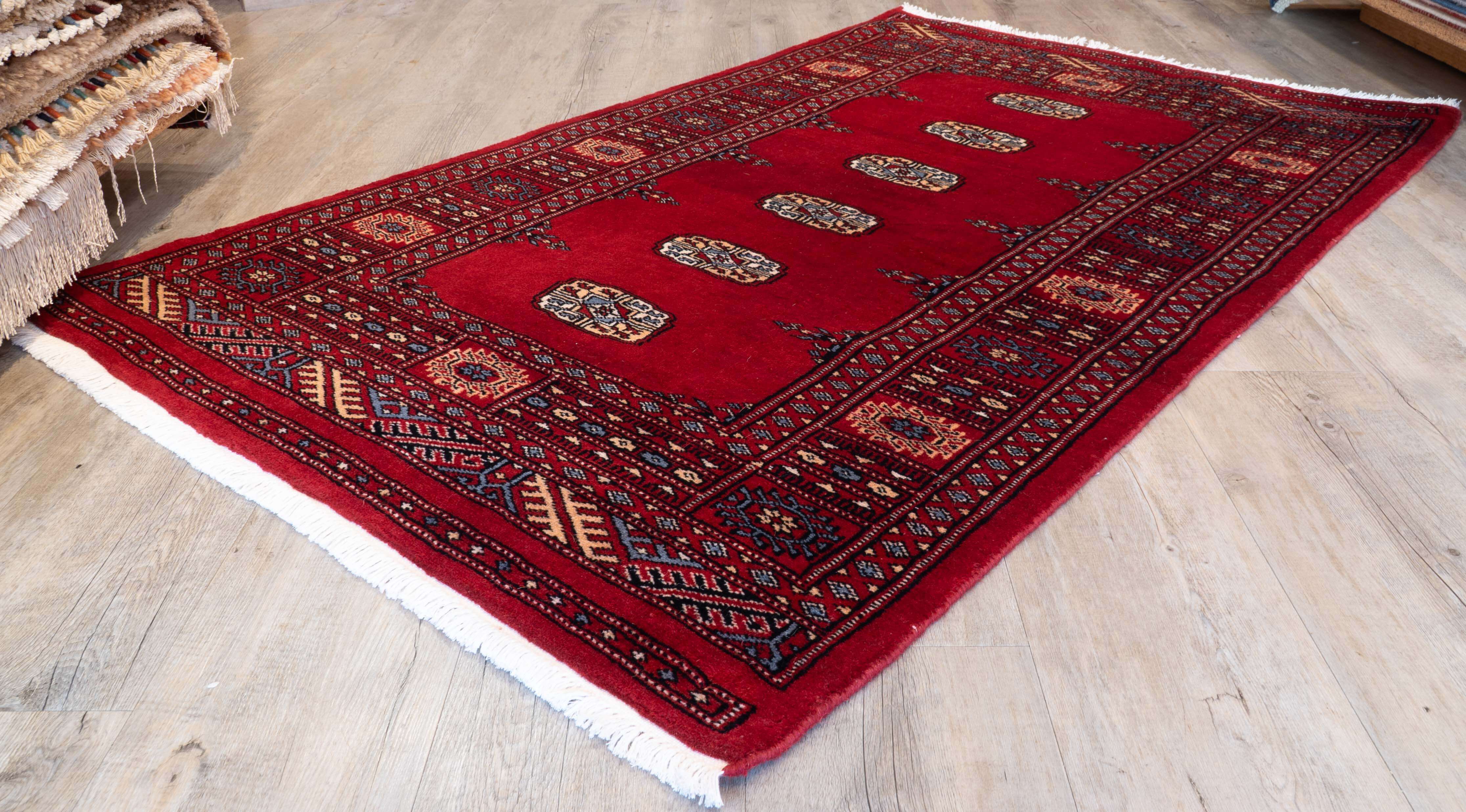 Pakistan Bokhara rugs are hand-woven using soft wool, sometimes imported from New Zealand, on a white cotton warp and weft. This gives the carpet a touch similar to silk, but with a much longer pile. These rugs offer great value for money as production is considered easier than other carpet manufacturing processes.