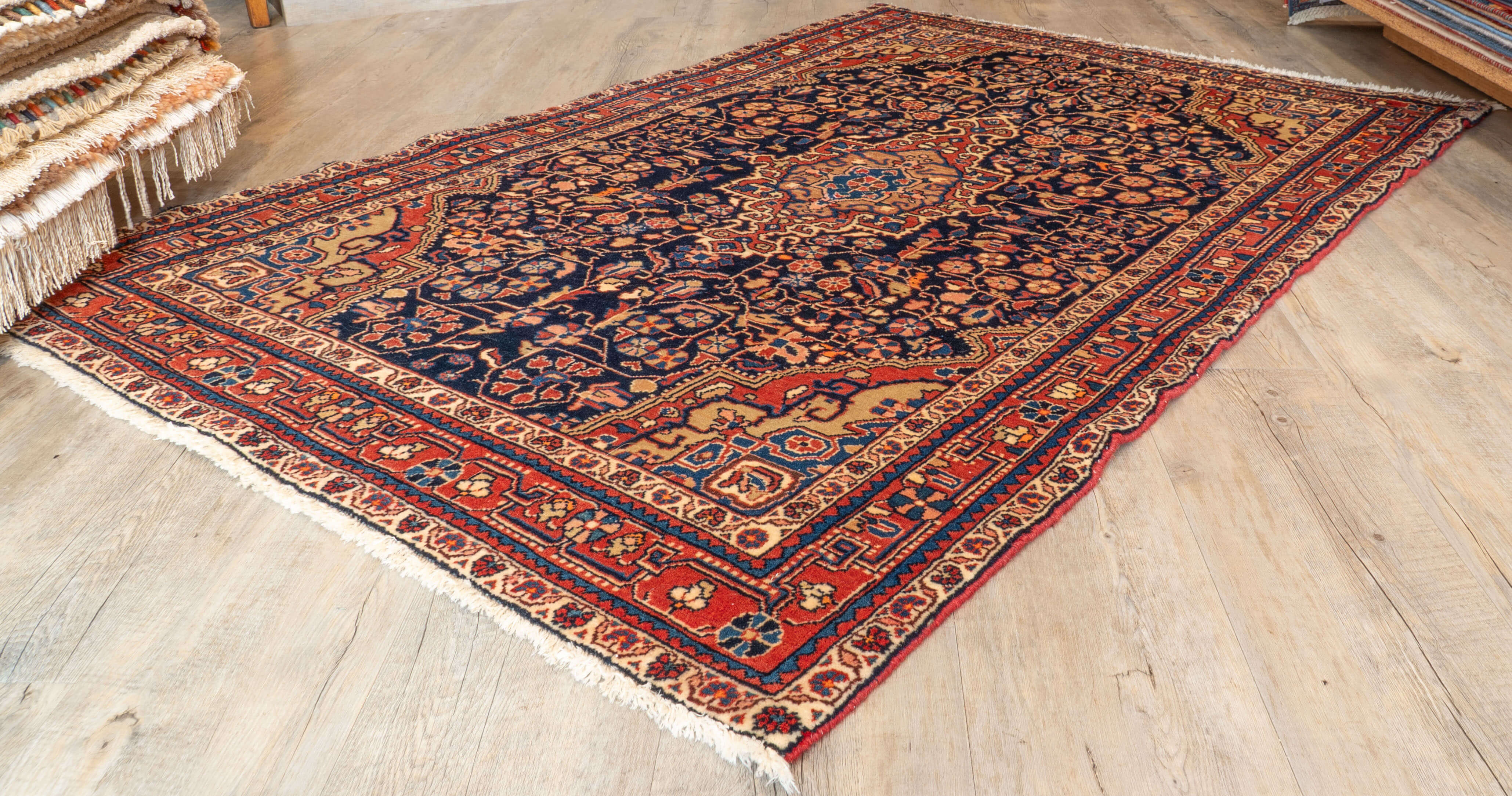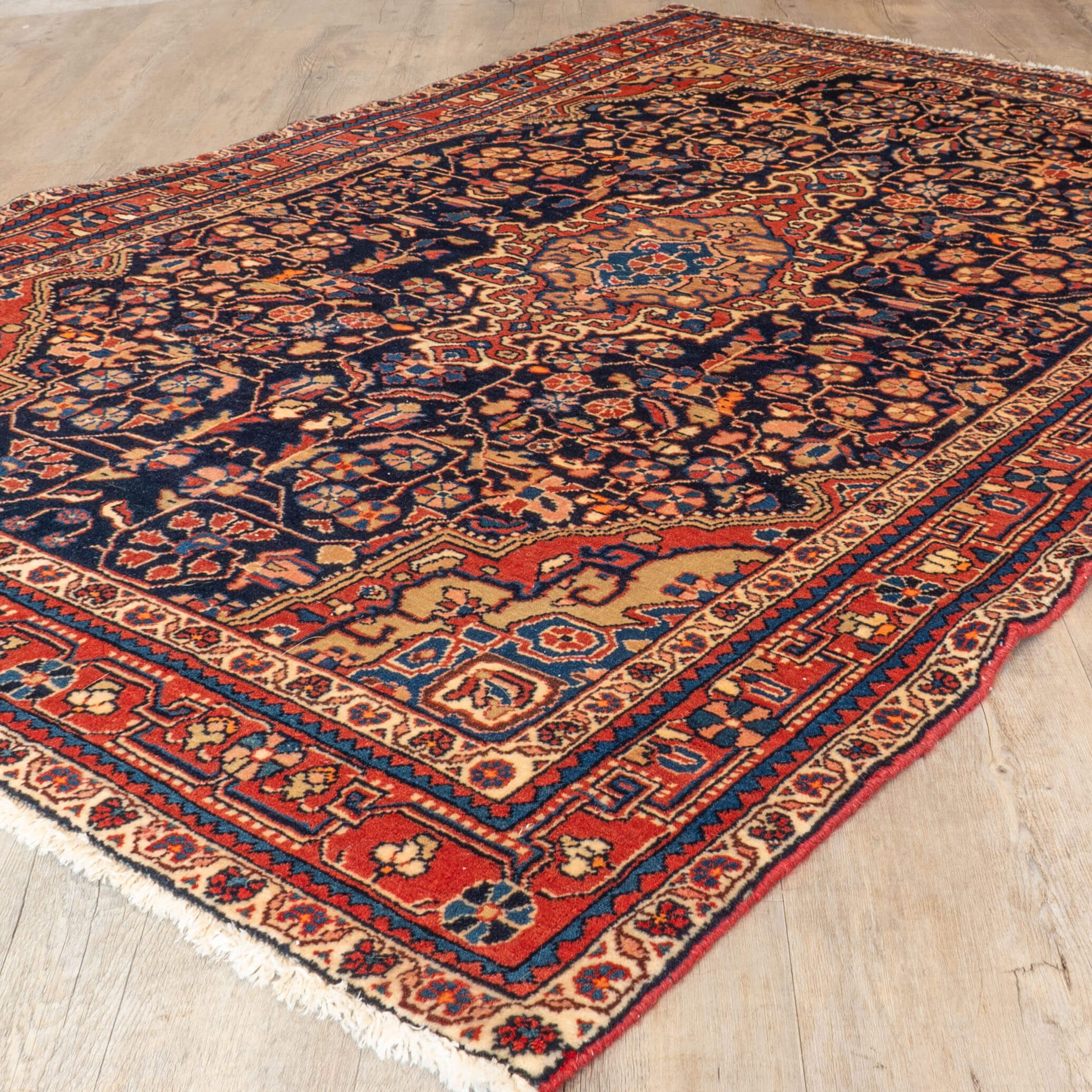 This is a classic Persian Jozan rug, wonderfully soft underfoot, with a great blend of warm colours. The timeless design features a classic Persian medallion pattern, crafted from vegetable-dyed, hand-spun wool on a cotton foundation. One can always find a space for a charming quality Persian rug.   Please click the hyperlinks below if you are interested in additional information. Jozan is a town in northwest Iran, renowned for making good, strong, solid, and durable rugs. They are made of a wool pile woven onto a cotton foundation. The colours used are the traditional reds and blues, and the design is often geometric. When...